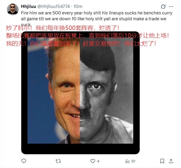美網(wǎng)友熱議勇士輸球:讓個杜蘭特都打不過 科爾快滾 波姐打包帶走