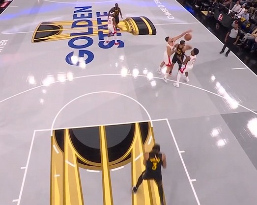 太騷了!庫(kù)里頂著阿門&申京不看人腦后妙傳 理查德后仰壓哨中投