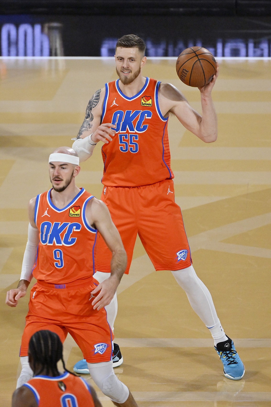 卡魯索最近獲得了一份提前續(xù)約合同,雷霆隊用約什-基迪(基迪并不適合雷霆隊不斷發(fā)展的比賽風格)從公牛隊那里交易得到了他。哈爾滕施泰因則是以非受限制自由球員的身份從尼克斯隊引進的。盡管霍姆格倫(臀部受傷)長期缺陣,但這些運作能夠增加球隊的陣容深度,為球隊最佳得分手(謝伊-吉爾杰斯-亞歷山大和杰倫-威廉姆斯)提供補充,幫助雷霆隊蓬勃發(fā)展。