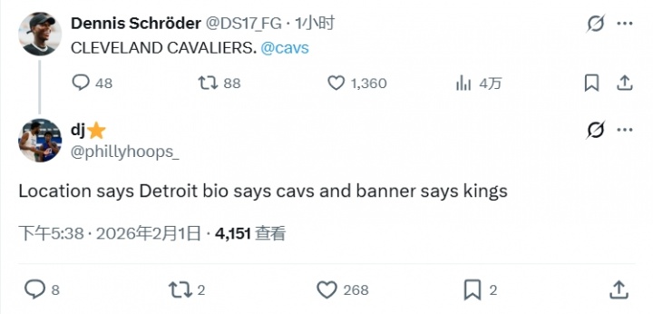 施羅德此前更新個(gè)人X,寫(xiě)道:“克利夫蘭騎士@騎士官推。”