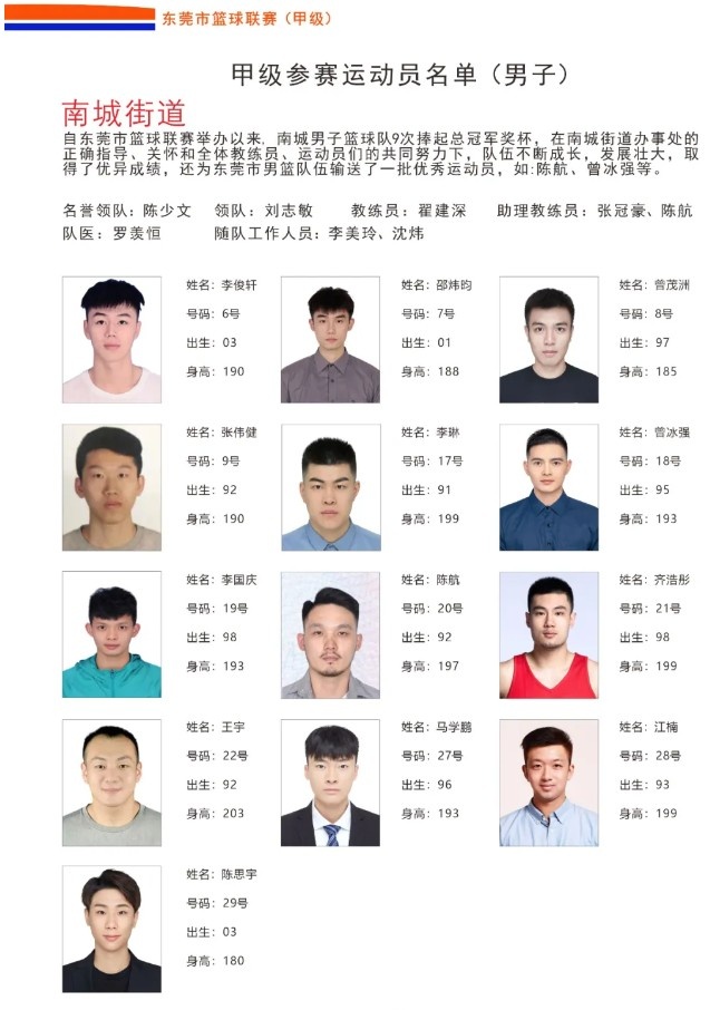 3月26日訊 今日,2025東莞市籃球聯(lián)賽(甲級)參賽運動員名單進行公示。其中,陳國豪、邵煒昀、李原宇、李京龍、曾茂洲、周湛東在列。東莞市籃球聯(lián)賽將于4月7日正式開賽,詳細運動員名單如下: