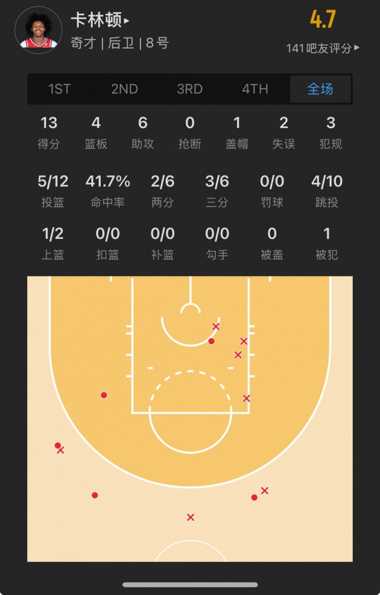 奇才14號秀 卡爾頓-卡林頓 登場30.7分鐘