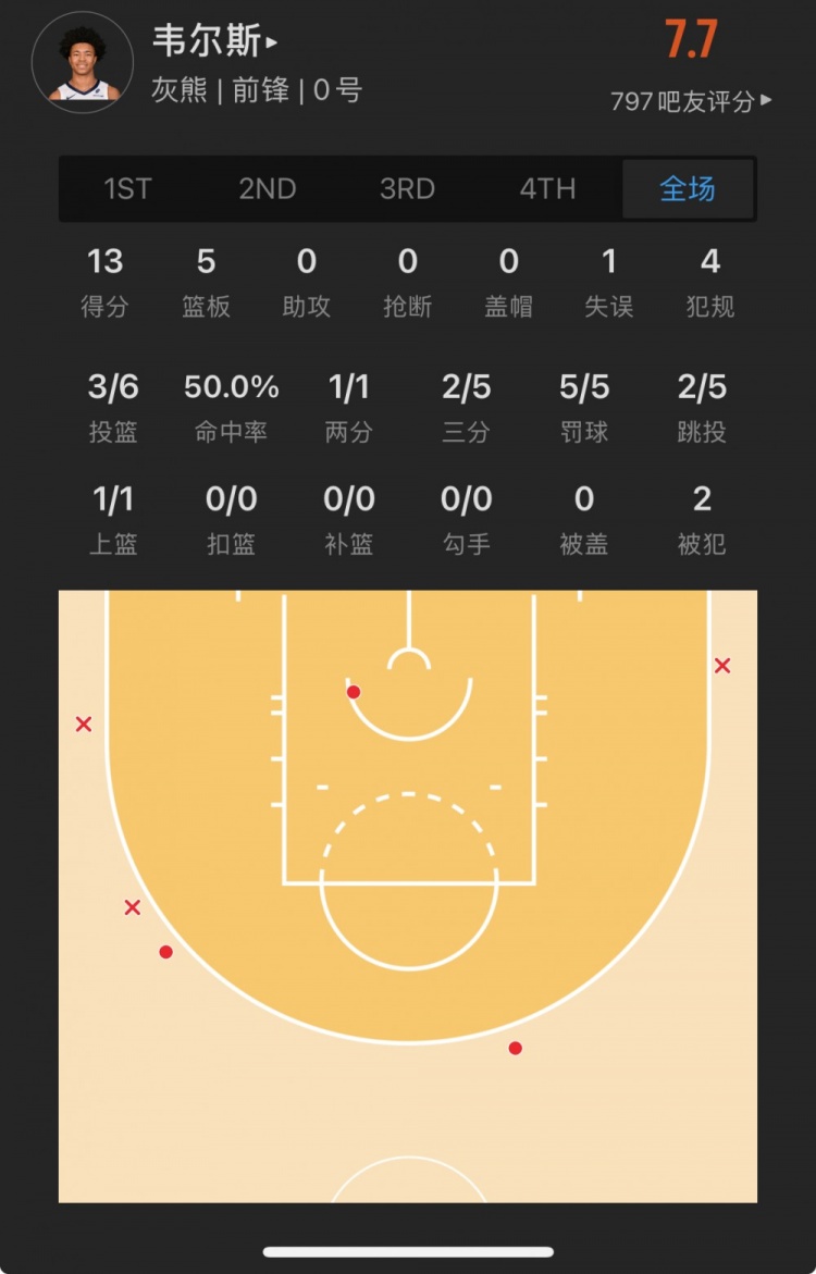 灰熊39號秀 杰倫-韋爾斯 登場28.2分鐘