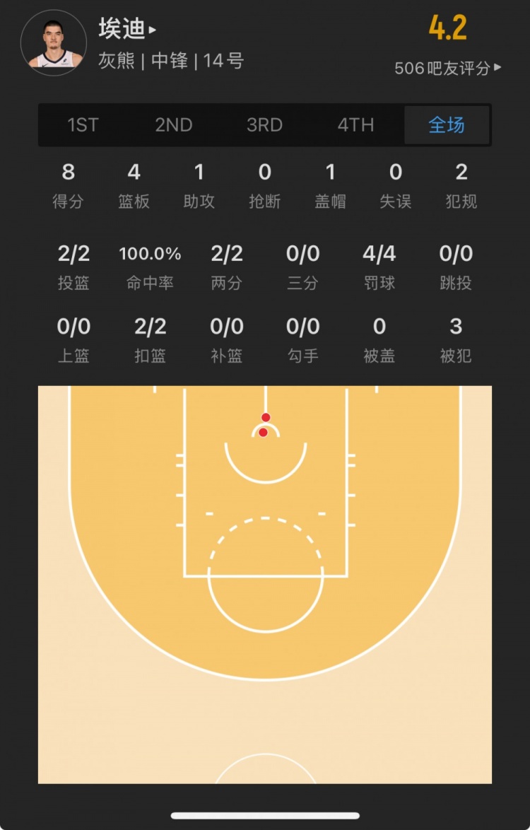灰熊9號秀 扎克-埃迪 登場17.0分鐘