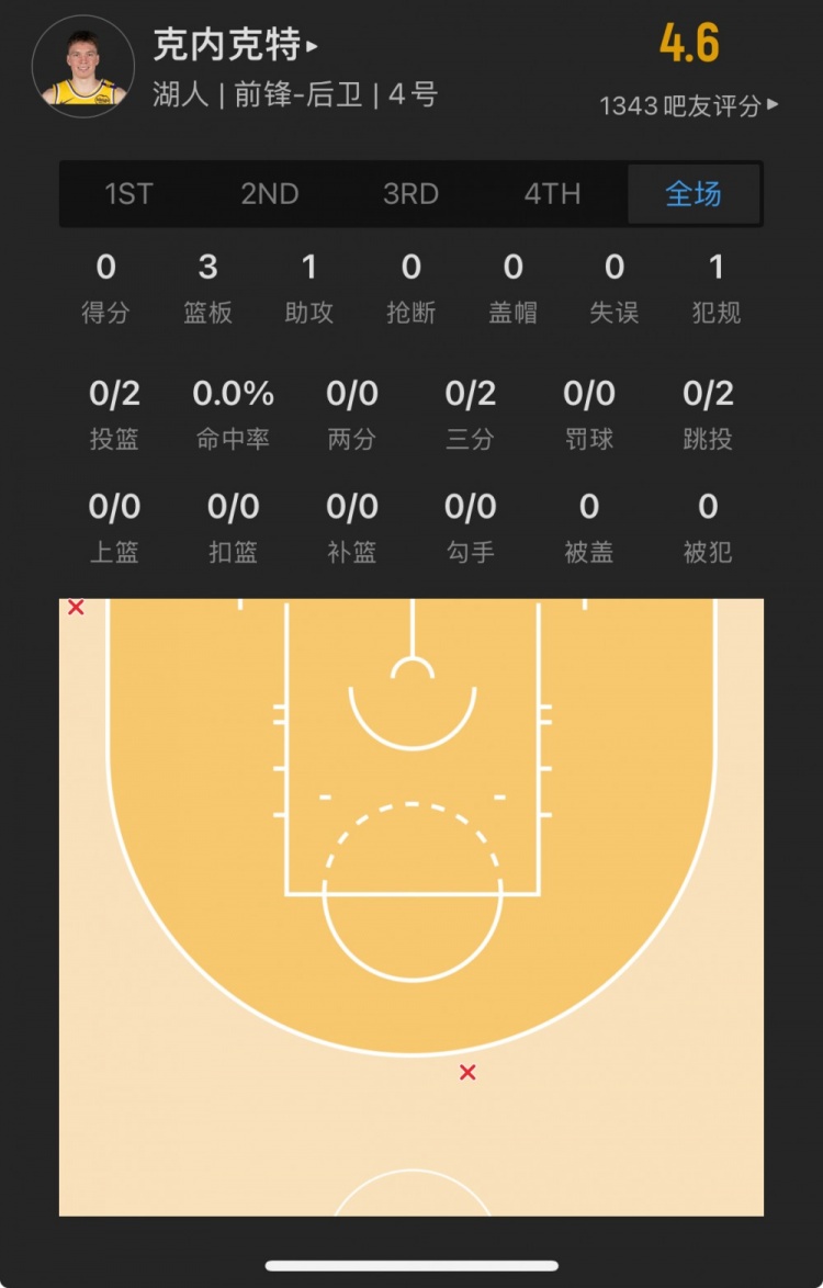 湖人17號秀 道爾頓-克內(nèi)克特 登場12.5分鐘