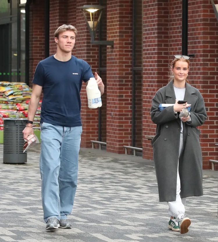 在結(jié)束與丹麥國(guó)家隊(duì)的國(guó)際比賽任務(wù)后,曼聯(lián)前鋒霍伊倫與女友勞拉羅德一同前往當(dāng)?shù)爻胁少?gòu)牛奶等生活必需品。